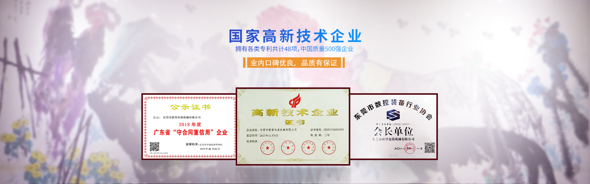 新望機械成立于1998年,位于東莞市東部工業(yè)園區(qū)的中心地帶——企石鎮(zhèn)東平村,交通方便、環(huán)境優(yōu)美舒適、視野開闊。公司注冊資本2000萬元,擁有辦公室、廠房等18,000多平方米。已通過ISO9001:2015國際質(zhì)量管理體系認證,擁有國家各類專利共計58項。是東莞市企石鎮(zhèn)工商聯(lián)副會長單位、東莞市企石鎮(zhèn)文學藝術(shù)界聯(lián)合會副主席單位、東莞市環(huán)保包裝行業(yè)協(xié)會副會長單位、東莞市數(shù)控裝備行業(yè)協(xié)會第二屆會長單位、廣東省包裝技術(shù)協(xié)會常務(wù)理事單位、廣東省膠粘劑行業(yè)協(xié)會理事單位、廣東省著名商標企業(yè)、國家高新技術(shù)企業(yè)。
